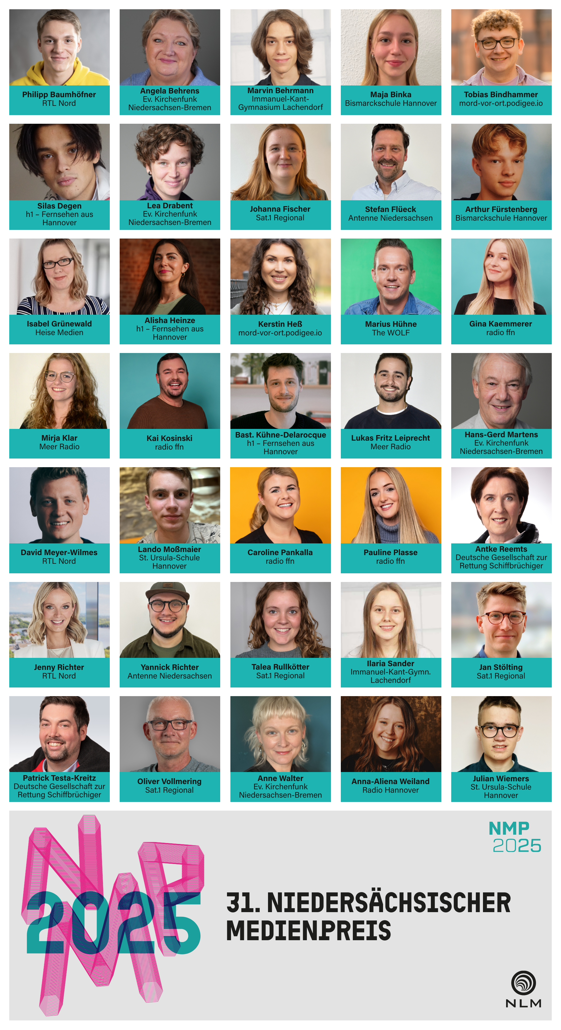Die Niedersächsische Landesmedienanstalt (NLM) verleiht den Niedersächsischen Medienpreis bereits zum 31. Mal. Mit dieser Auszeichnung würdigt sie herausragende journalistische und kreative Leistungen und setzt zugleich ein Zeichen für Medienvielfalt und publizistische Qualität im privaten Rundfunk und im Onlinebereich in Niedersachsen. Der Preis ist mit insgesamt 15.000 Euro dotiert. Schirmherr ist der Niedersächsische Ministerpräsident Olaf Lies.