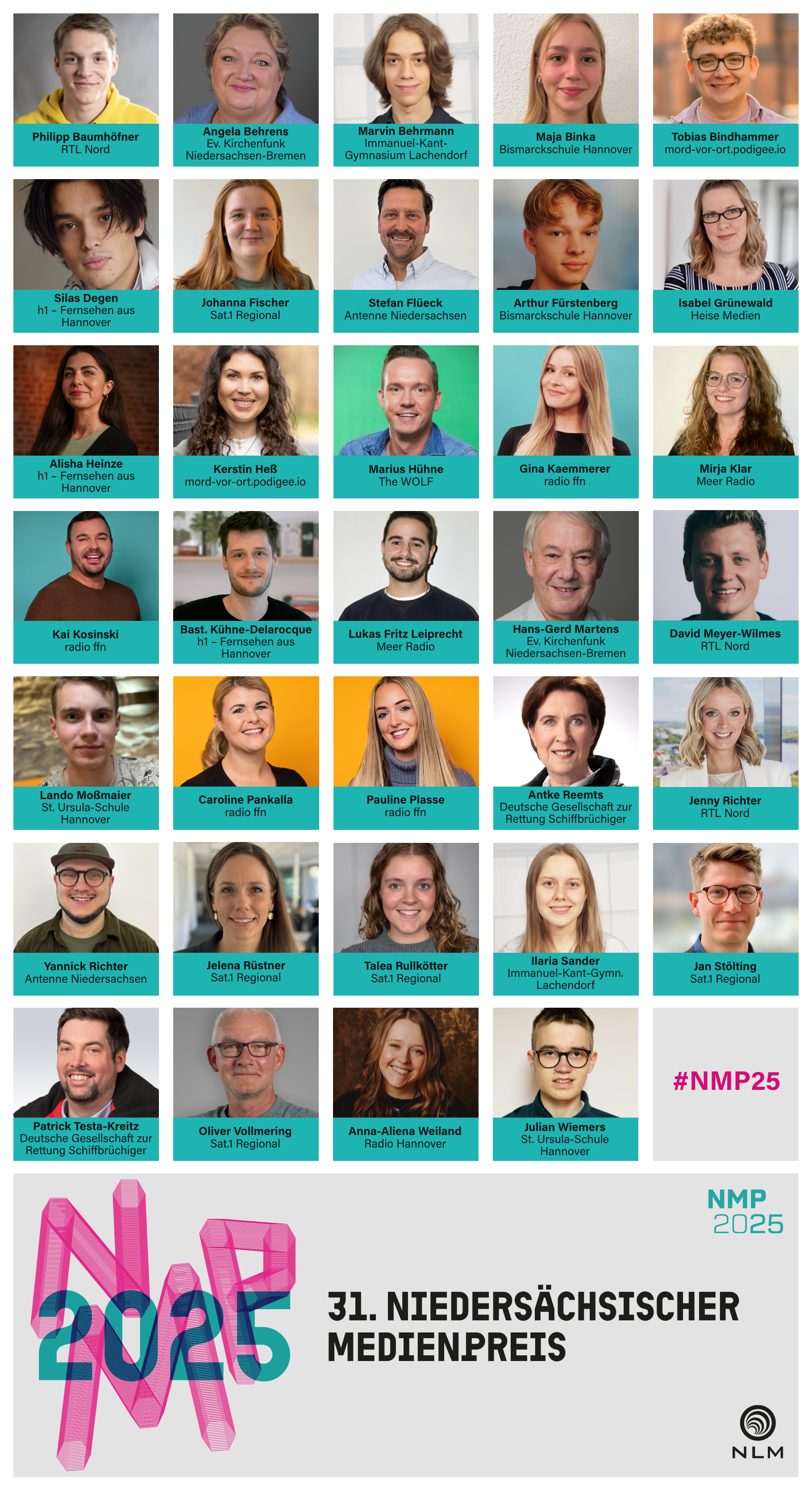 Die Niedersächsische Landesmedienanstalt (NLM) verleiht den Niedersächsischen Medienpreis bereits zum 31. Mal. Mit dieser Auszeichnung würdigt sie herausragende journalistische und kreative Leistungen und setzt zugleich ein Zeichen für Medienvielfalt und publizistische Qualität im privaten Rundfunk und im Onlinebereich in Niedersachsen. Der Preis ist mit insgesamt 15.000 Euro dotiert. Schirmherr ist der Niedersächsische Ministerpräsident Olaf Lies.